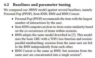 1. item-to-item recommendation approach (Sarwar et al.,2001; Linden et al., 2003) : 采用 session 中 item 间的相似性预测下一个 item。缺点:只考虑了最后一次的 click 的 item 相似性,忽视了前面的的 clicks, 没有考虑整个序列信息。