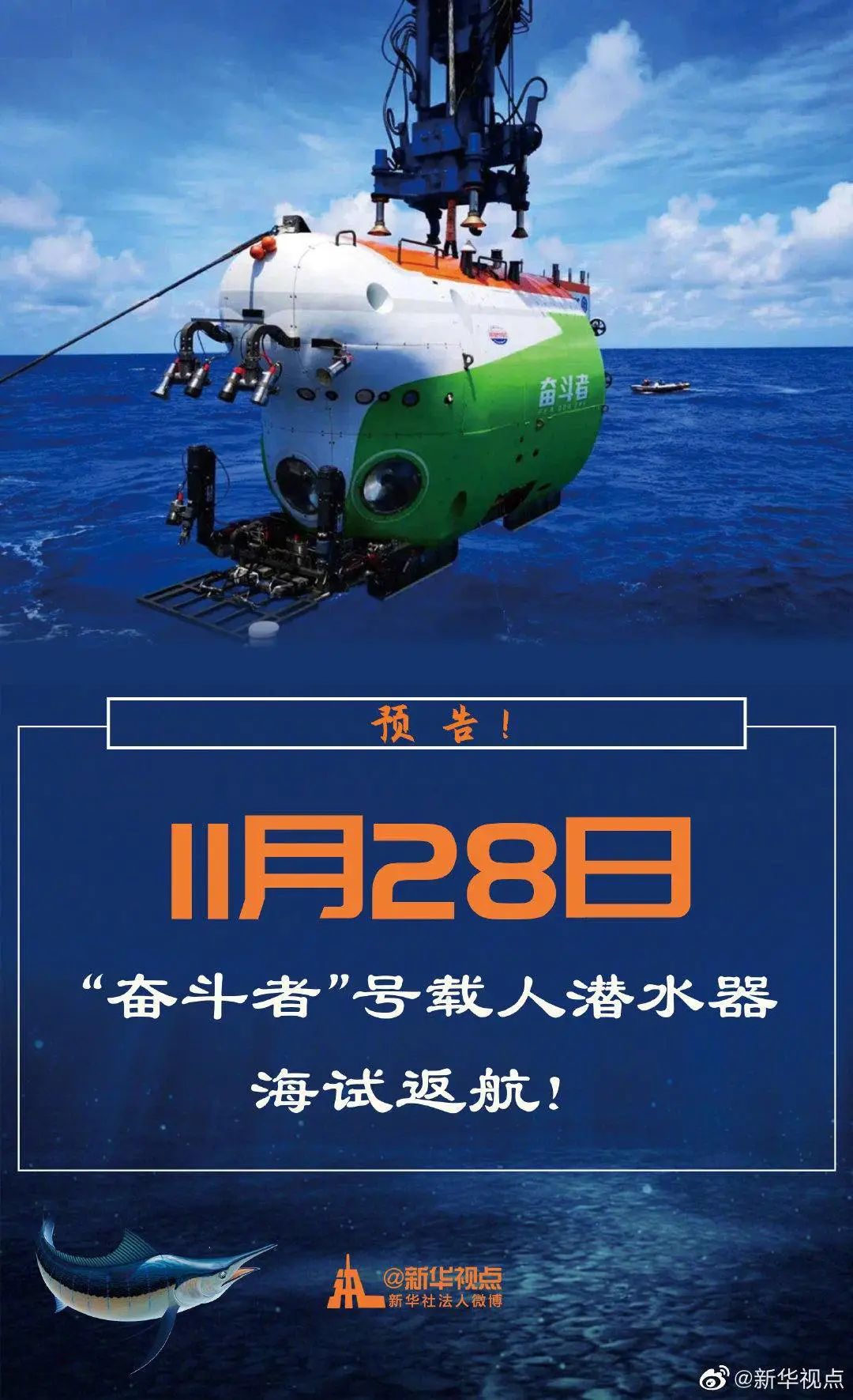 今天上午8时30分许,在马里亚纳海沟结束科考任务的“探索一号”科考船在三亚南山港码头靠泊下锚,我国“奋斗者”号载人潜水器也随船胜利返航。此次任务中,#我国载人潜水器坐底万米深海沟#,“奋斗者”号在马里亚纳海沟成功坐底10909米。