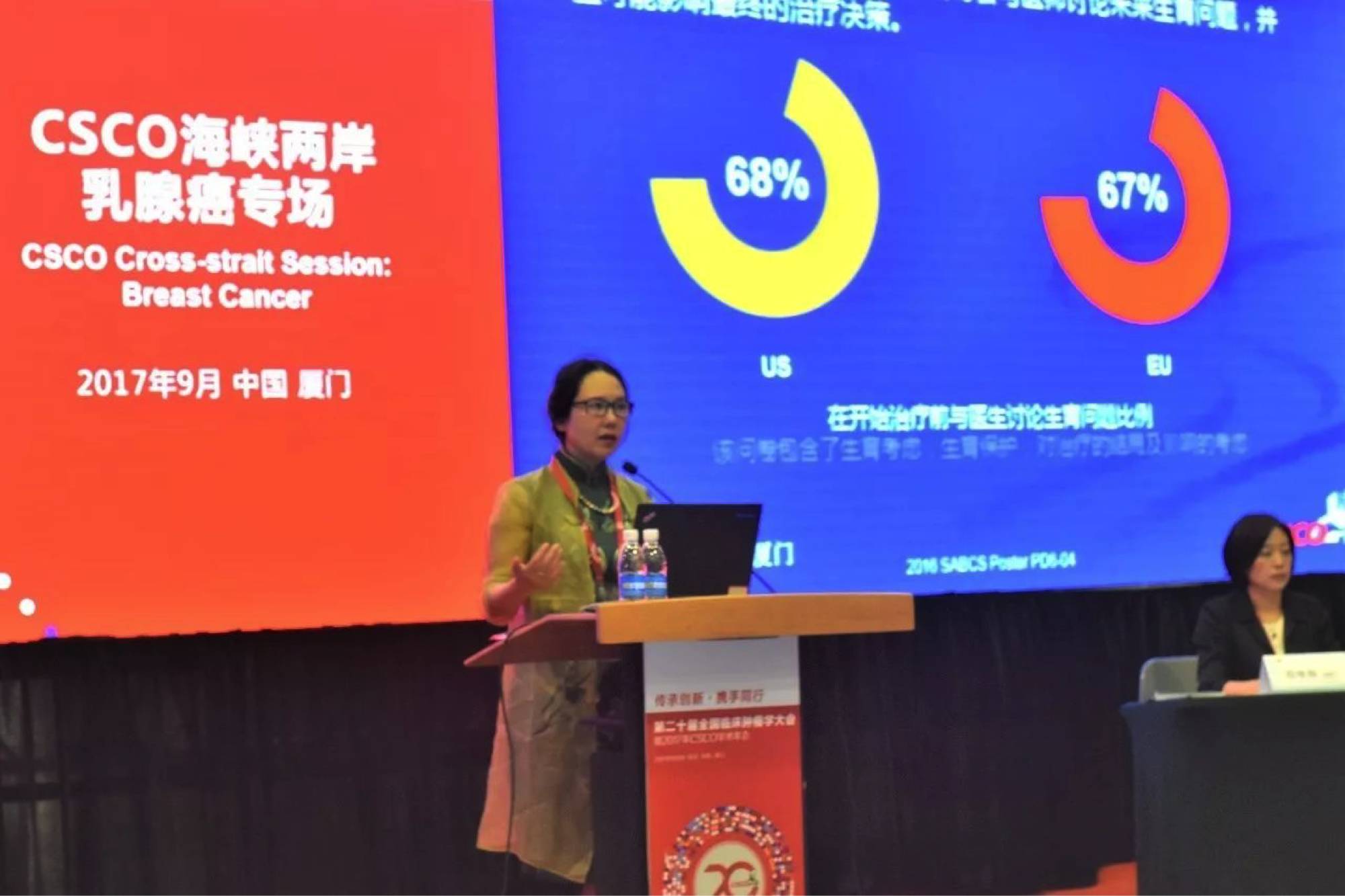 来自哈尔滨医科大学附属肿瘤医院张清媛教授在“CSCO海峡两岸乳腺癌专场”报告会中,进行名为《年轻女性乳腺癌患者生育问题回顾》的主题演讲,张教授深入浅出的讲述了年轻乳腺癌患者在辅助化疗、内分泌治疗与生育之间的策略问题,为年轻乳癌患者提供了科学的参考。