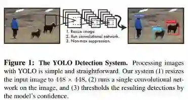 下图中展示的文章提出了一种单一的神经网络,可以在单次评估中预测图像中的边界框和类概率。