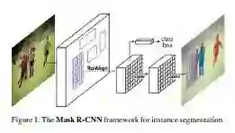 在此模型中,物体通过边界框和语义分割实现分类和局部化,语义分割是将图片中每个像素分类。该模型通过在每个感兴趣区域(ROI)添加分割掩模的预测来扩展Faster R-CNN, Mask R-CNN产生两个输出,类标签和边界框。