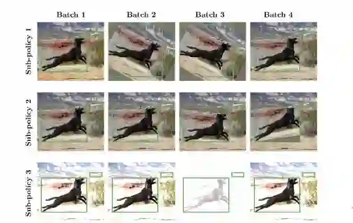 在此模型中,增广策略被定义为在训练过程中随机选择的一组n个策略,在此模型中应用的一些操作包括颜色通道畸变,几何图像畸变,以及仅边界框注释中的像素畸变。对COCO数据集的实验表明,优化数据增强策略能够将检测精度提高超过+2.3平均精度,这允许单个推理模型实现50.7平均精度的准确度。