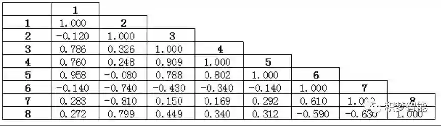 由上图,可知测点1、3、4、5为后部分总成上测点,点2、6、7、8为为前部分总成上测点。将该总成上各测点的相关性系数分别结算出来,查找规律。