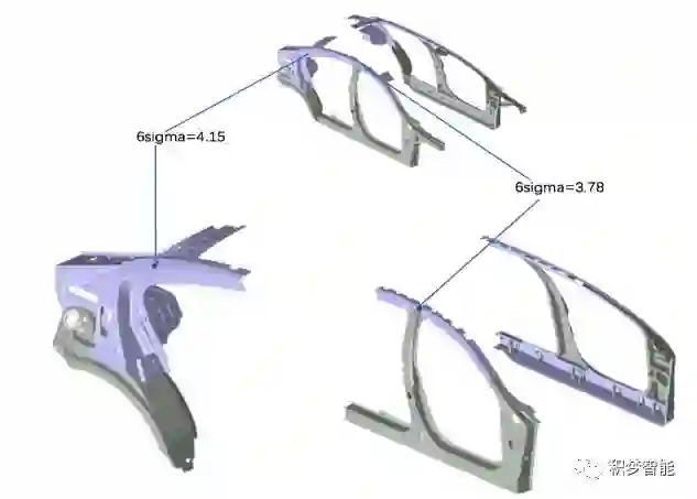 再例如,利用数据的相关性分析,能快速找到质量问题的原因。如图所示,某白车身上右侧围上两个测点的6σ一直保持较大的数值,现在需要查找原因,降低他们的波动值。