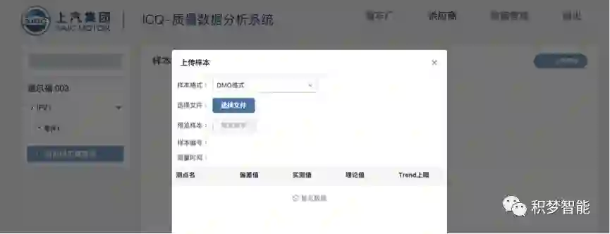 2、采集工艺数据:除了采集产品数据,上汽乘用还将工装数据——包括工装标定数据、垫片调整记录,以及生产过程中的工艺事件收集到积梦智能为他们设计的数据管理平台中;