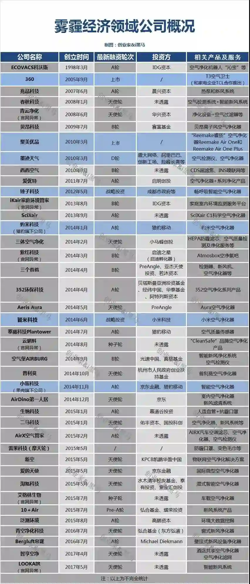 “进入雾霾季以来,几乎每天都有相关新产品的发布,或者新融资的诞生。”一名行业观察者对创业家&i黑马说道。