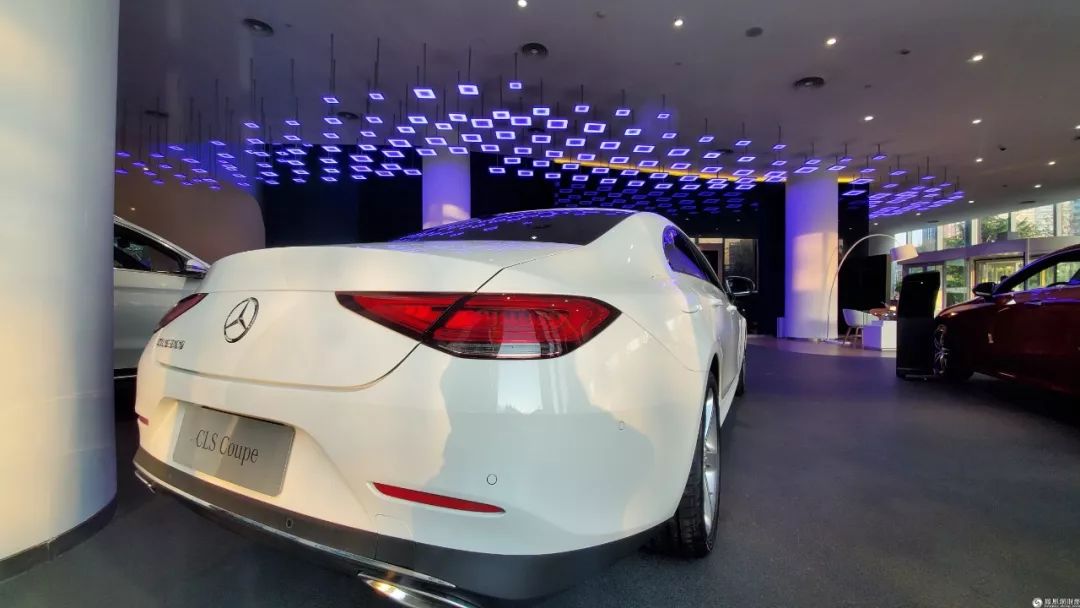 奔驰总部楼下4S店内展示的奔驰CLS300,与西安漏油门事件涉事车同款。图/田牧
