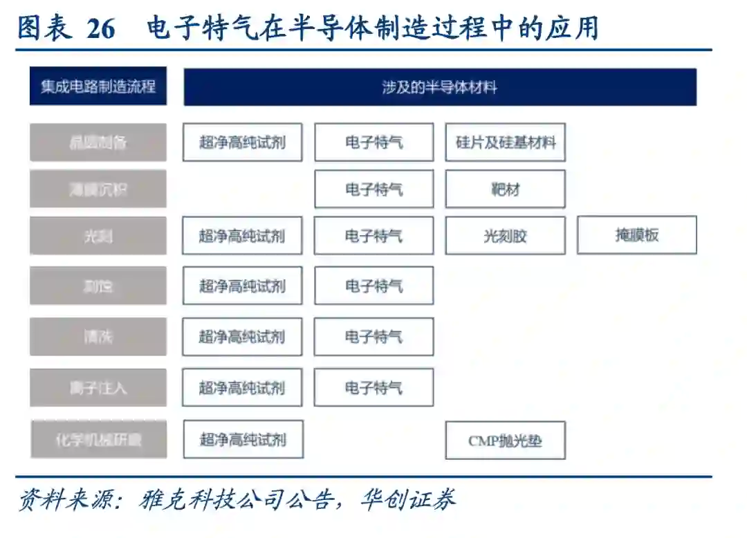 电子特气在半导体制造过程中的应用(图源:华创证券)