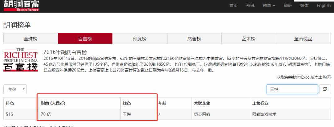 2016年3月,王悦迎来人生的高光时刻,以70亿元的身家,与滴滴创始人程维一同入选“2016胡润全球富豪榜”,成为中国最年轻富豪。