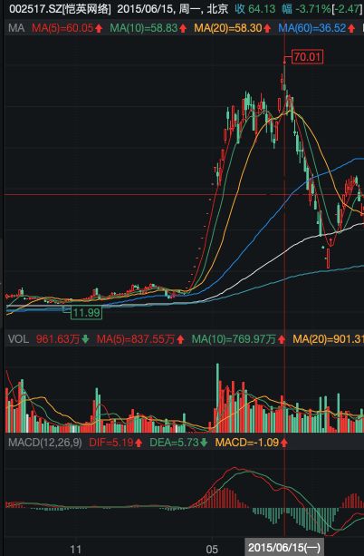 2015年,恺英网络作价63亿元借壳泰亚股份登陆A股。按照当时的价格,停牌前最后一个交易日2014年12月31日,泰亚股份股价为14.41元,2015年4月复牌后至6月15日,恺英网络创下借壳上市以来迄今为止最高价70.01元,两个月时间暴涨388%。