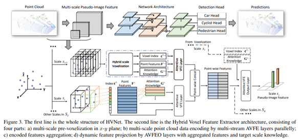 作者在论文中提出了一种新的模型Hybrid Voxel Network (HVNet),在自动驾驶领域基于三维点云实现了一阶段对象检测网络。