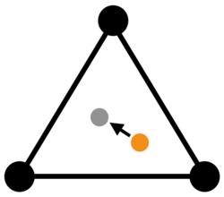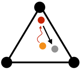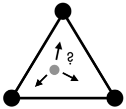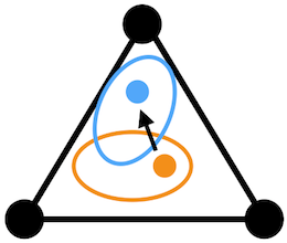 输出则是一个预测,表示为本图像从属于每个类别的概率。例如,分类器可能会给出这样一个预测:这个图片有 50% 的概率是猫,30% 的概率是狗,20% 的概率是马。我们可以在一个三角形中将其可视化表示: