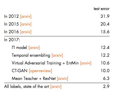 (top-5 验证误差:9.1)In 2017: Mean Teacher + ResNet:https://arxiv.org/abs/1703.01780