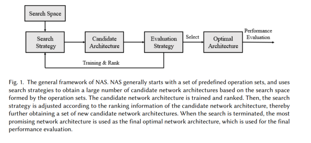 在快速发展的NAS研究领域中,类似的研究线索十分普遍,基于挑战和解决方案对NAS研究进行全面、系统的调研是非常有用的。以往的相关综述主要根据NAS的基本组成部分: 搜索空间、搜索策略和评估策略对现有工作进行分类[26,27]。这种分类方法比较直观,但不利于读者捕捉研究线索。因此,在本次综述查中,我们将首先总结早期NAS方法的特点和面临的挑战。基于这些挑战,我们对现有研究进行了总结和分类,以便读者能够从挑战和解决方案的角度进行一个全面和系统的概述。最后,我们将比较现有的研究成果,并提出未来可能的研究方向和一些想法。