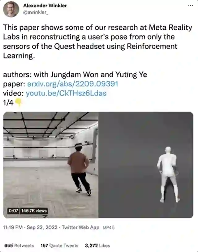 一作Alexander W. Winkler,目前是Meta Reality Lab的研究科学家,研究方向是非线性数值优化、高自由度运动规划、基于三维物理的仿真和可视化等。