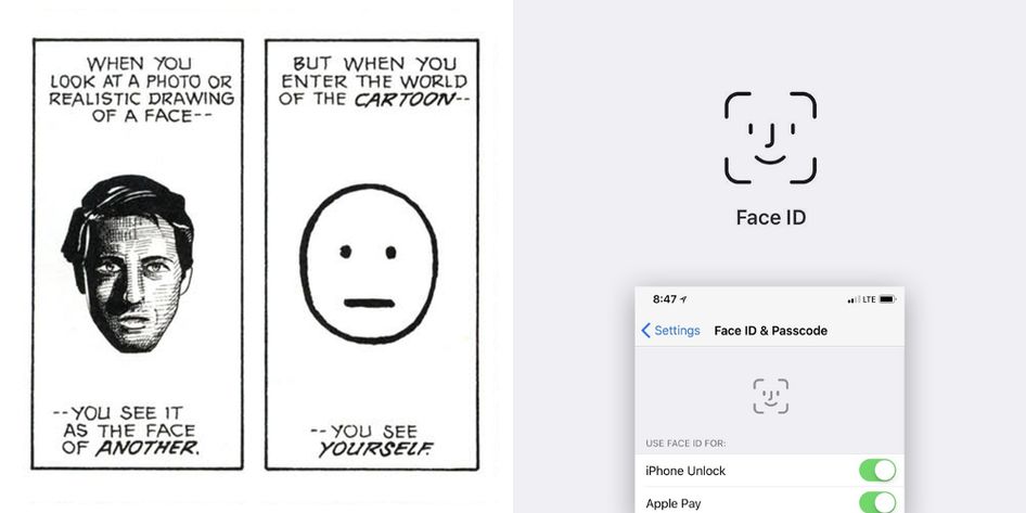 (左)通过Scott McCloud了解漫画;(右)Kare的“快乐Mac”精神活在了Apple的Face ID中