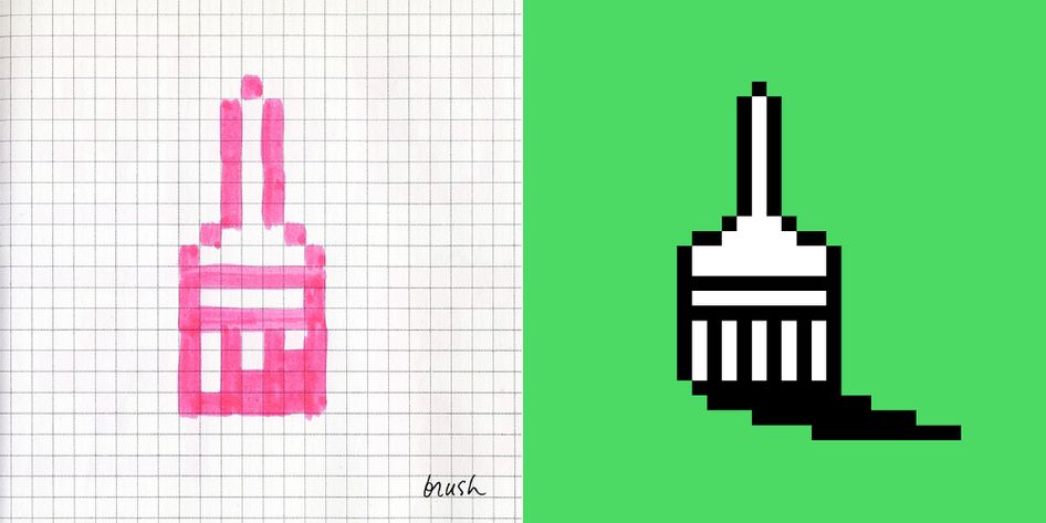 我刚到苹果的时候,还在纸上做设计。如果当时有方格纸,那么我可以在格子上画出小图像,并转移到计算机屏幕上。”