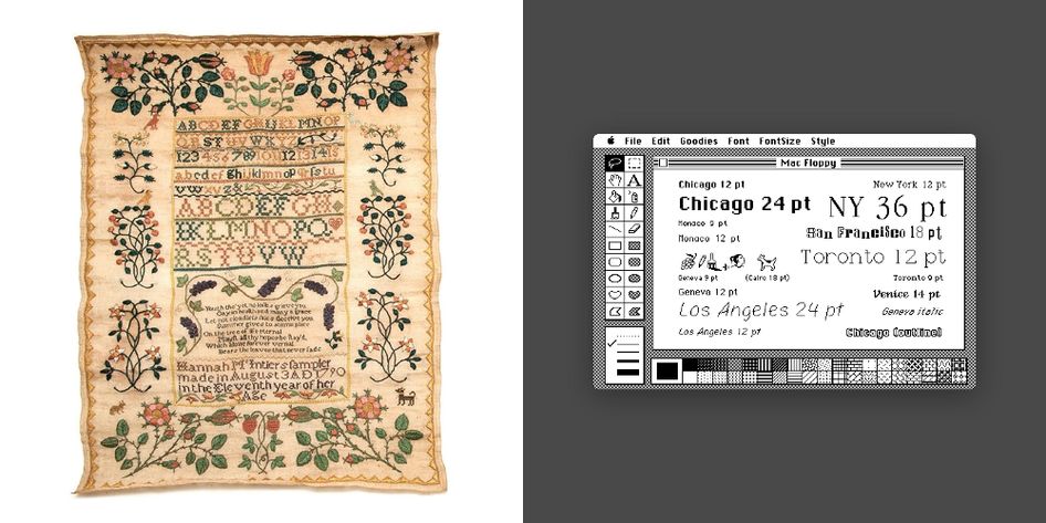 “位图图形就像马赛克、十字绣以及其他伪数学的艺术形式,所有这些我在去苹果之前就练习过了。我曾经说,如果你喜欢针线活儿的话,你肯定喜欢位图设计!因为它们很类似。”
