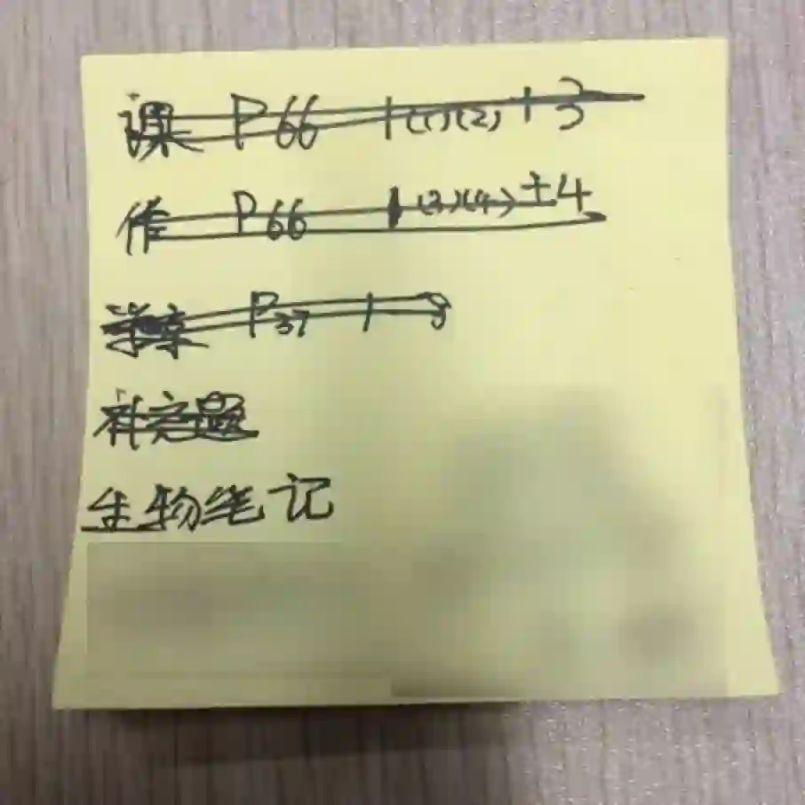高中课堂上不允许使用手机,但是我还是想要有一个计划清单规划好每天晚上要完成的作业,那就用笔 + 便签解决。
