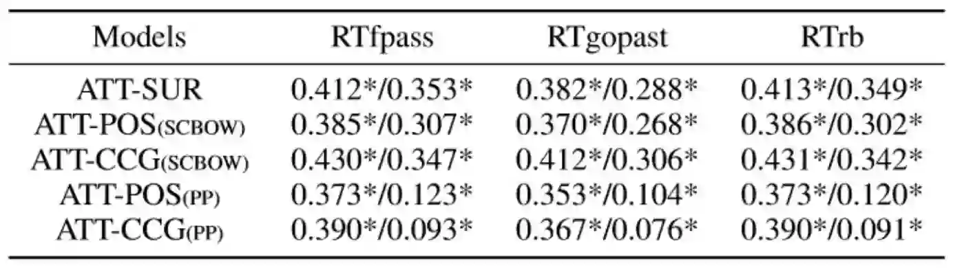 ▲ 图3:人类阅读时间和模型计算的注意力权重对比结果