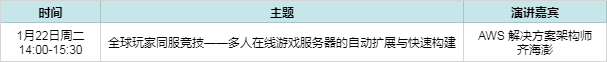 不用担心!针对以上问题,就在 1 月 AWS 在线研讨会,小编给大家带来了一场聚焦于 AWS 在 高性能游戏服务器 上的架构搭建与落地的免费课程!