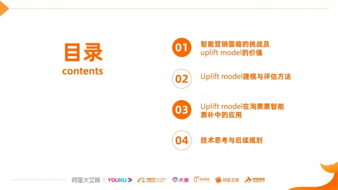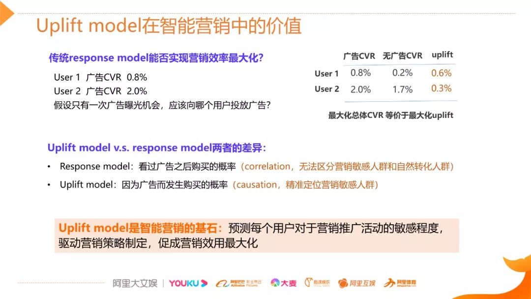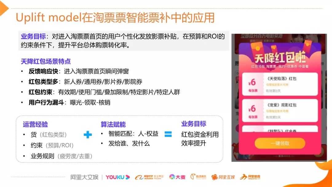 本次直播分享了营销增益模型的原理和常见的建模及评估方法,并以淘票票智能票补为例介绍uplift model技术的实践经验。