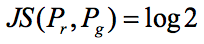 在 WGAN 前作中,论文作者分析出原始 GAN 两种形式各自存在的问题,其中一种形式等价于在最优判别器下,最小化生成分布与真实分布之间的 JS 散度。但是对于两个分布:真实分布 Pr 和生成分布 Pg,如果它们不重合,或者重合的部分可以忽略,则它们的 JS 距离是常数,梯度下降时,会产生的梯度消失。