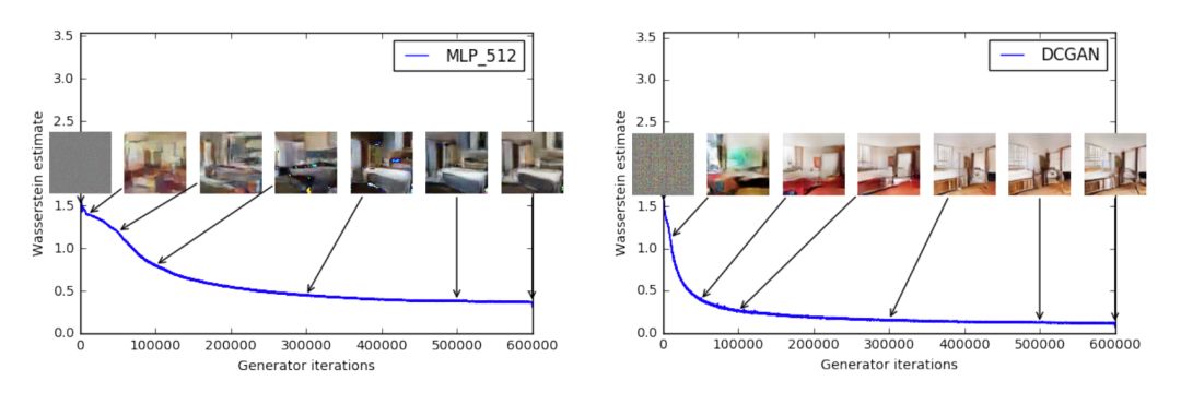 训练过程中有一个有意义的 loss 值来指示生成器收敛,并且这个数值越小代表 GAN 训练得越好,代表生成器产生的图像质量越高;