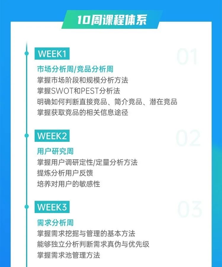 10周课程覆盖初级产品经理的各项要求,入行快人一步。
