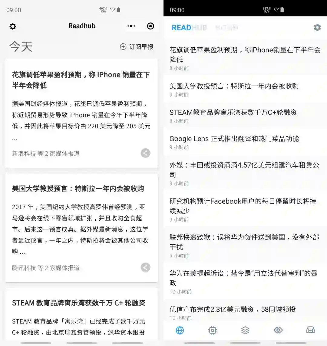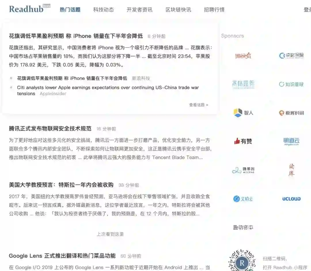 除了网页版外,Readhub 还推出了官方微信小程序,并拥有多个第三方客户端,你可以在 这里 了解更多。