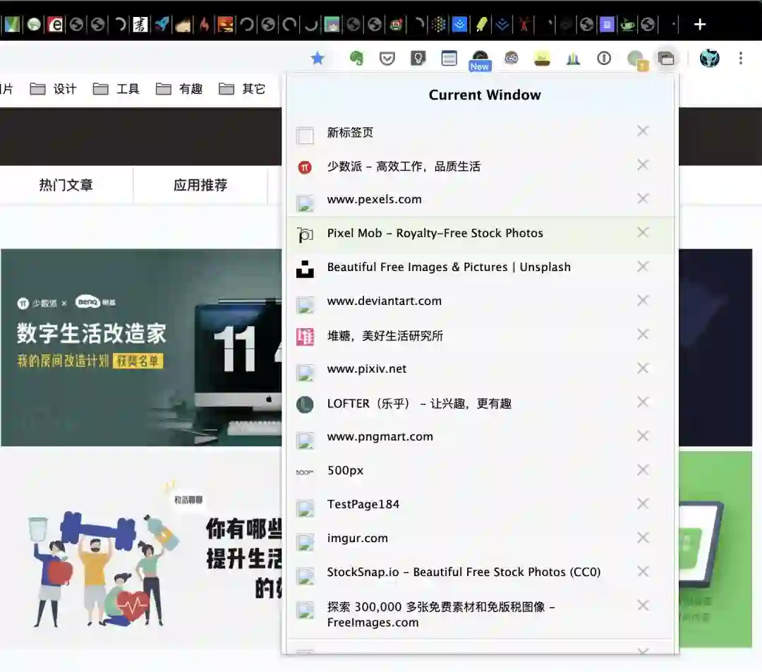 与 Firefox 不同,一次性打开一大波网页后,Chrome 会把所有标签页都缩成一团,完全无法辨识。而 Go to Tab 则可以将当前打开的网页标题展示为列表,点击即可跳转或关闭。如果标签页实在过多,你还可以用键盘快捷键快速操作,并搜索 URL 和标题,提高浏览效率。