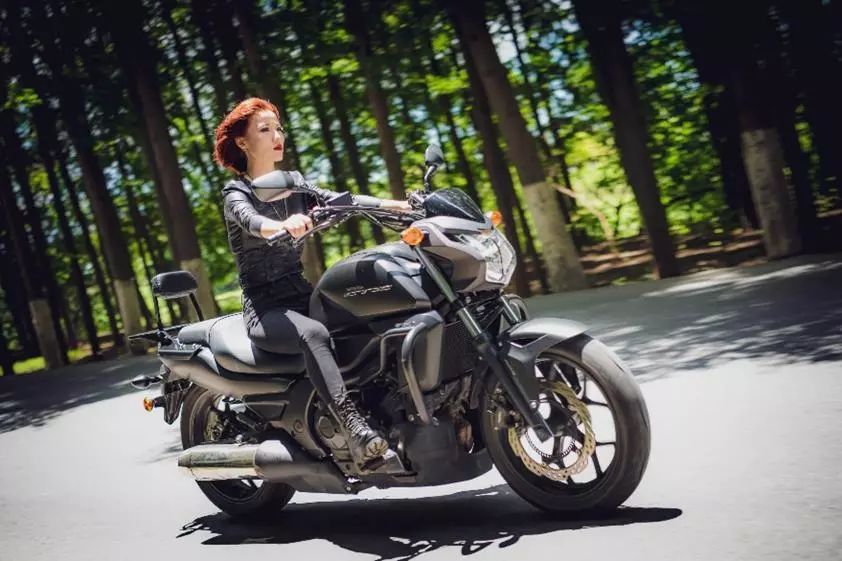跨上车座,点火,挂挡,给油,发动。伏身在重量5倍于自己体重的摩托车上,她的身高勉强可以hold住座驾。伴着两声油门的轰鸣,芭比出动。
