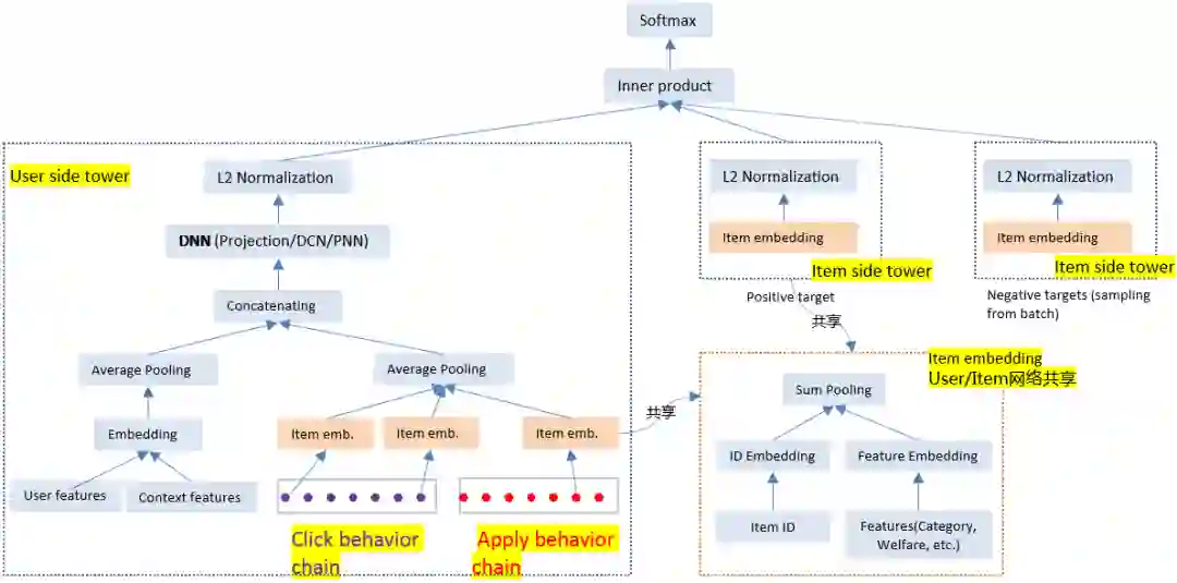 特别的,Item Embedding层由用户侧和物品侧共享。