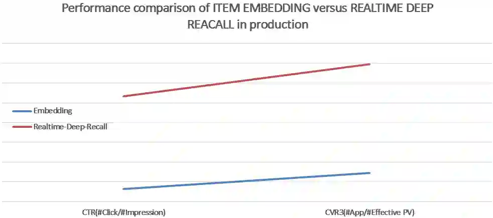实时深度召回方法在CTR、CVR指标上都有1个百分点以上的提高。
