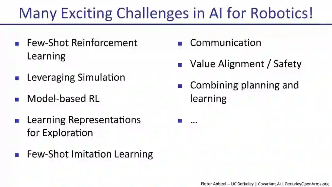 编写机器人程序仍然是出了名的困难。让机器人具备学习的能力,就可以绕过那些通常需要耗费大量时间来完成特定任务的编程工作。这个演讲将描述最近在深度强化学习(机器人通过自己的尝试和错误学习)、学徒学习(机器人通过观察人学习)和元学习(机器人学习学习)方面的进展。这项工作使机器人在操作、移动和飞行方面有了新的能力,这些领域的进步都是基于相同的方法。