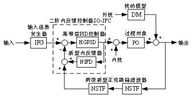 通过二阶内反馈控制器、输入函数发生器、过程对象、新型正弦跟踪滤波器、扰动模型等构造出一种二阶内反馈控制系统。