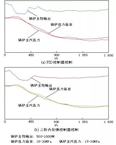 将二阶内反馈控制器运用于某1 000MW超超临界燃煤机组的锅炉主控系统的优化。优化前,所述锅炉主控系统采用PID控制。