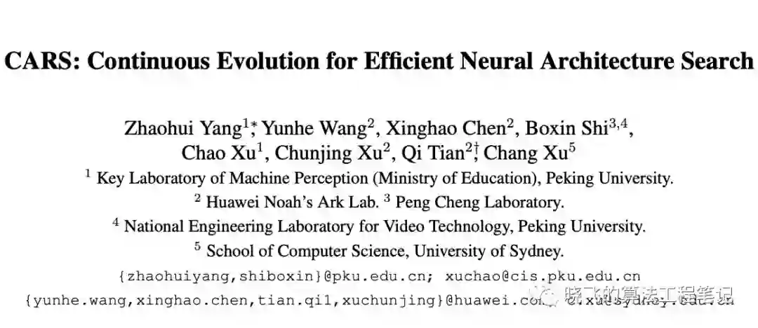 论文: CARS: Continuous Evolution for Efficient Neural Architecture Search