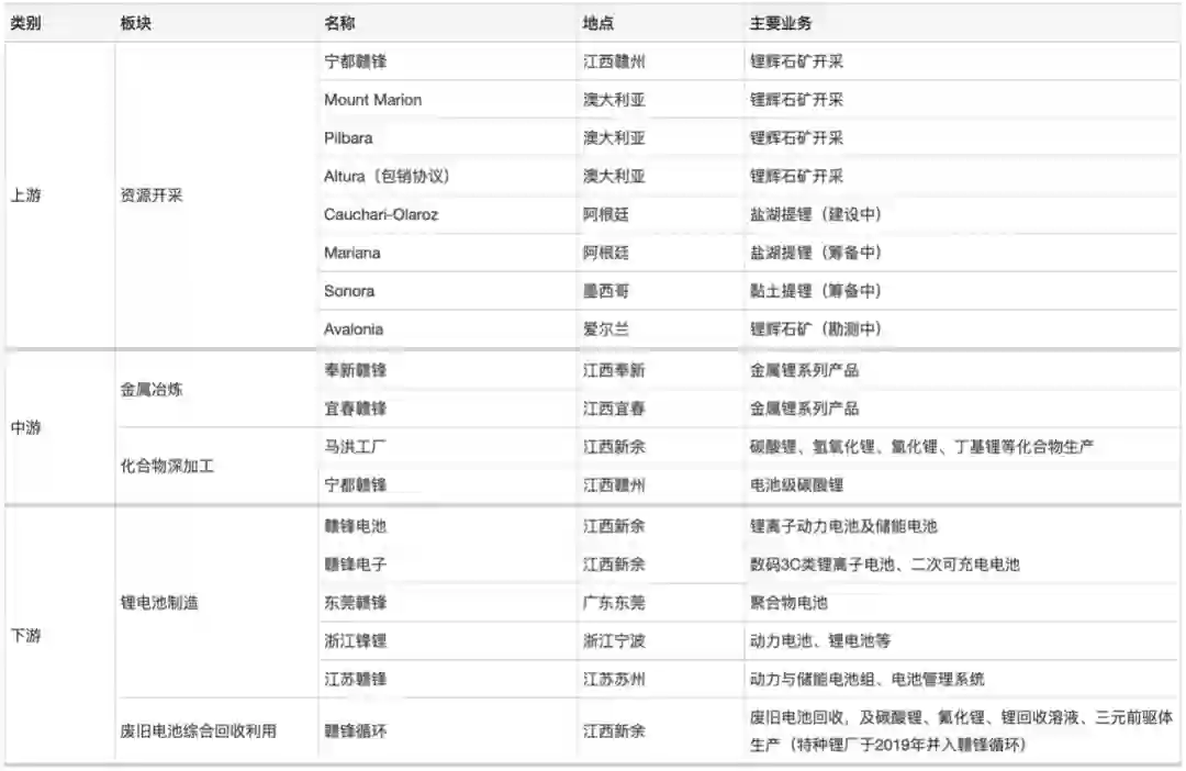 目前,赣锋锂业已经形成了上游资源开采、中游提炼加工、下游电池制造、回收的全产业生态,产品应用在新能源汽车动力电池、储能电池、消费电子产品等领域。