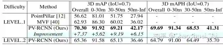 我们先看看PV-RCNN 3D检测框架的性能如何。说到底,做high-level的,大多数还得硬碰硬 (不然难免故事吹的天花乱坠,一跑AP只有0.5。。