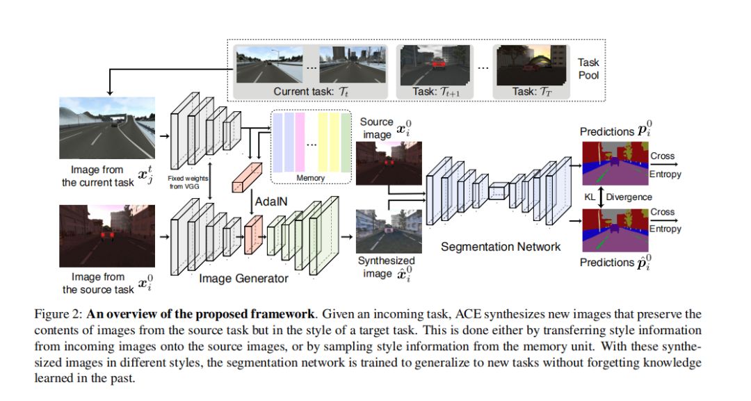 使用生成对抗网络(GAN)来进行图像合成越来越火,这种图像合成方式被认为是生成器和鉴别器之间的极大极小博弈。为了控制生成过程,加入了许多额外的信息如标签,文本,属性和图像等等。GAN还用于图像到图像转换的上下文中,其使用循环一致性或映射到共享特征空间将图像的样式转换为参考图像的样式。在不知道域的联合分布的情况下,这些方法试图从每个域中学习边际条件分布。然而,利用GAN生成高分辨率图像仍然困难且是密集计算型的。相比之下,神经网络风格迁移方法通常避免了生成模型的困难,简单地匹配特征统计Gram矩阵或执行通道独立的均值和方差对齐。ACE就在风格迁移的基础上,以当前任务的图像风格合成新的图像,同时保留原图像的语义信息。