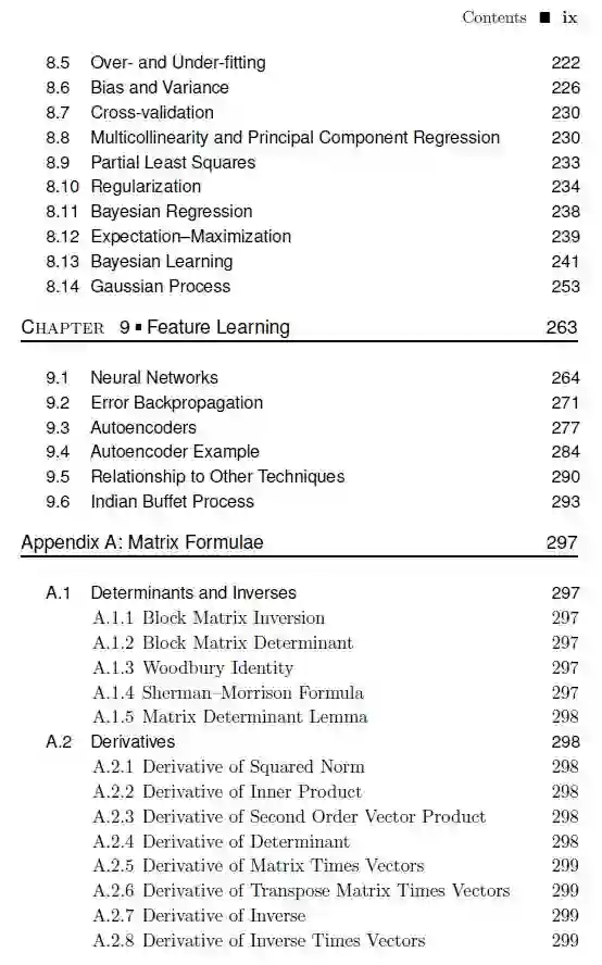 这本书旨在缓解这一问题。一个共同的概念,但已知在几个学科不同的名称,是描述使用数学作为共同的语言。读者会发现索引对他们所知的特定主题有用。该索引是全面的,使它很容易找到所需的信息。希望这本书能成为有用的参考书,并成为任何使用机器学习技术的人书架上的必备品