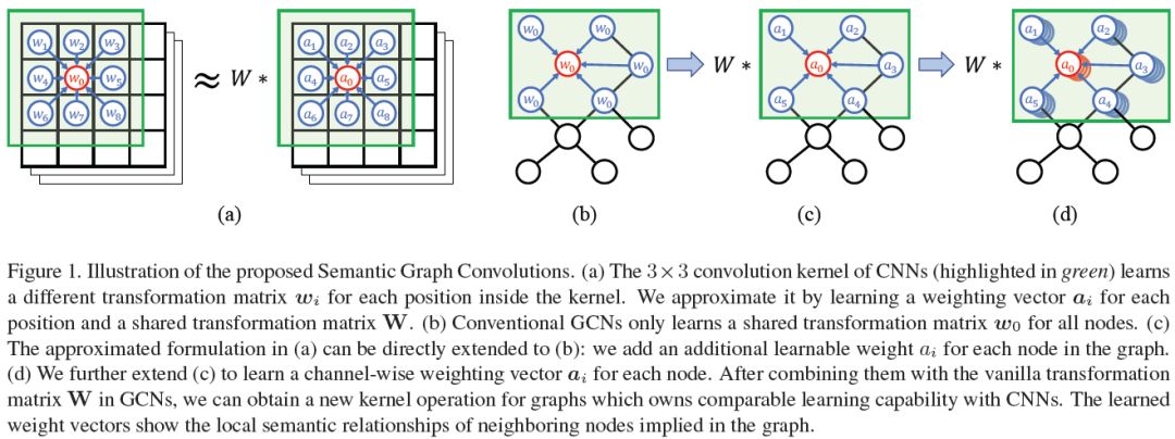 摘要:本文研究了学习图卷积网络(GCNs)回归问题。目前GCNs的结构局限于卷积滤波器的小接收域和每个节点的共享变换矩阵。为了解决这些局限性,我们提出了语义图卷积网络(SemGCN),这是一种新型的神经网络结构,用于处理具有图结构数据的回归任务。SemGCN学习捕获语义信息,例如局部和全局节点关系,这些信息在图中没有显式表示。这些语义关系可以通过端到端训练从基本事实中学习,而不需要额外的监督或手工编写的规则。我们进一步研究了SemGCN在三维人体姿态回归中的应用。我们的公式是直观和充分的,因为二维和三维人体姿态都可以表示为编码人体骨骼中关节之间关系的结构化图形。我们进行了全面的研究来验证我们的方法。结果表明,SemGCN在使用的参数减少了90%的情况下,性能仍优于现有的技术水平。
