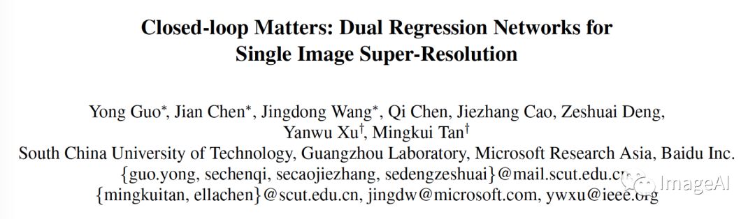那么本文针对这两个问题,通过对偶学习(Dual Learning),建立了个由LR->HR->LR闭环对偶回归(Dual Regression)模型。