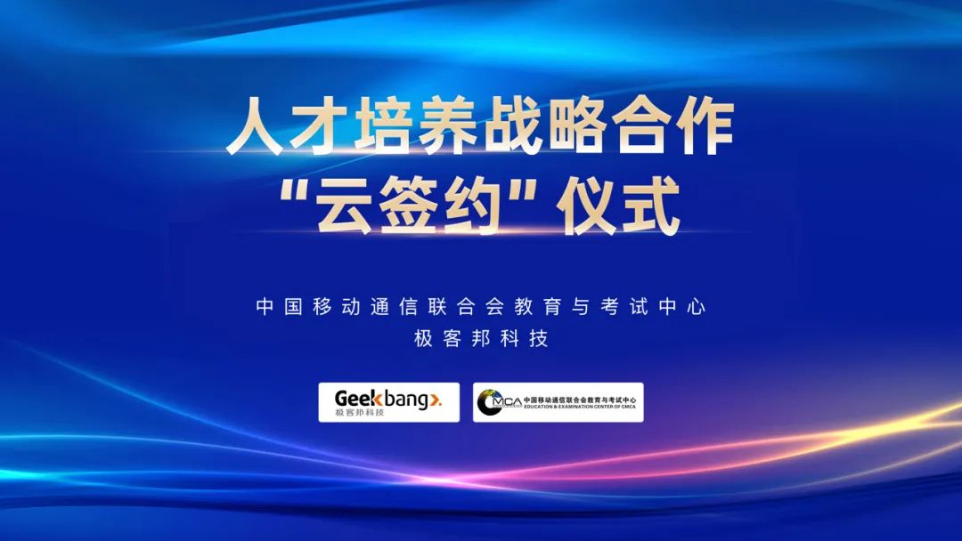 近日,极客邦科技与中国移动通信联合会教育与考试中心举行线上战略签约仪式,双方就ICT行业讲师标准评价体系建设及专项技术培训认证等方面进行深入合作,共同推动数字人才发展,助力我国数字经济高速前进。中国移动通信联合会教育与考试中心主任陈晓华,极客邦科技副总裁、双数研究院院长付晓岩出席签约仪式。
