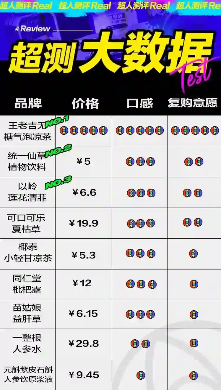 这次我们选择了最近很火的一整根人参水、可口可乐夏枯草、王老吉无糖气泡凉茶、以岭莲花清菲、统一仙草植物饮料、同仁堂枇杷露、元斛紫皮石斛人参饮原浆液、苗姑娘益肝草、椰泰小轻甘凉茶一共9款植物饮料,从价格、口感和复购意愿三个维度展开测评。
