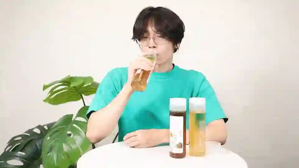 因为它喝起来简直苦得要死,感觉简直就是什么草根子的味道,加上发酵过的隔夜西洋参茶味儿,太离奇了,可能这就是一种越接地气越大补的概念吧。