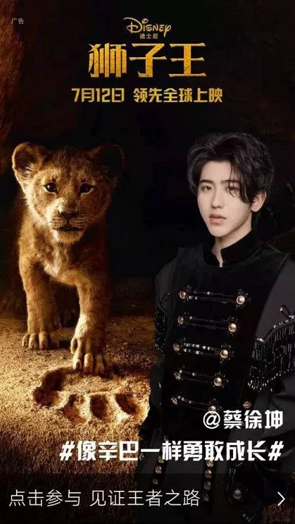 许多网友认为,“流量明星”蔡徐坤和“童年经典”《狮子王》完全不搭边,强行绑定蔡徐坤与《狮子王》,是一种极其尴尬的宣发手段。