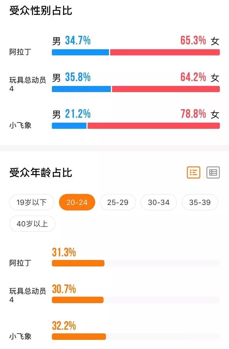 灯塔专业版数据显示,2019年在国内上映的三部迪士尼电影中,20-24岁的女性观众也是绝对的受众主力。
