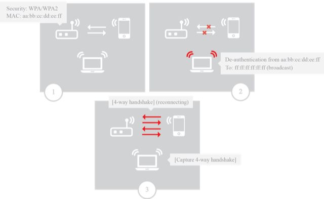 图 2:在解除认证攻击后捕获 WPA 握手包的场景